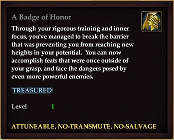 - When looted, is accompanied by the message: "You have unlocked the ability to adventure beyond level 90!"