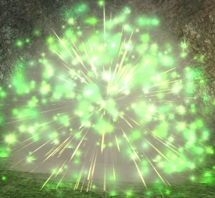 An expanding burst of sparks that change color as they go, red to purple. |
