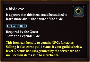 Used in the quest: Lore and Legend: Bixie