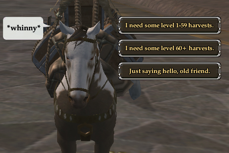 After L clicking the pony, dialogue options start that allow you to chose which types of materials you want it to "bring" you.