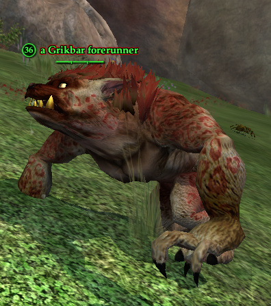 A Grikbar forerunner 76,461 pages on this wiki Edit Edit source History Talk 0 A Grikbar forerunner other resources LootDB · EQ2LL · ZAM EverQuest II Monster Information Race : Kobold Level : 36▼▼ Tier 4 Solo Class : Guardian Zone : Steamfont Mountains Location: Wanders around the general area of Camp Redcap ( -465, 97, 875 ) /waypoint -465, 97, 875 What does this information mean? Categories : Monsters Echoes of Faydwer Monsters Kobold Tier 4 Monsters Solo Monsters Steamfont Mountains Monsters Monster pages that need EQ2MAP uid Add category Cancel Save