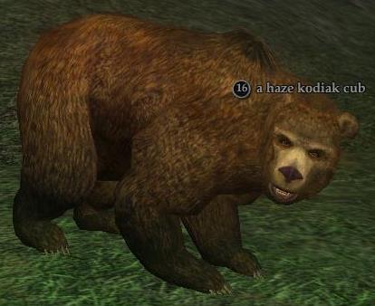 A haze kodiak cub 76,461 pages on this wiki Edit Edit source History Talk 0 A haze kodiak cub other resources LootDB · EQ2LL · ZAM EverQuest II Monster Information Race : Bear Level : 16 Tier 2 Solo Zone : Antonica Location: ( -2079, 12, 762 ) /waypoint -2079, 12, 762 What does this information mean? Categories : Monsters Bear Tier 2 Monsters Solo Monsters Antonica Monsters Monster needing location Add category Cancel Save