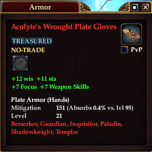 Acolyte's Wrought Plate Gloves (Equipped) |