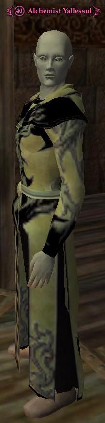 Alchemist Yallessul has a charm that once made soloing him very difficult, since charming someone soloing him reset the fight. One notable feature of this charm is that it's also nearly impossible to resist; targets 25 levels above him will rarely, if ever, resist the spell, making it a very annoying fight to solo if you lack the means to prevent the charm. The effect on Players of even higher level is unknown, but at the time of writing presumed the same.