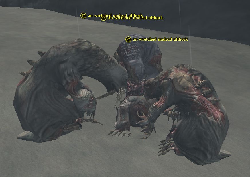These Ulthorks are either single roamers (97^^ Heroic) or in static groups of three (97 Even Con Heroic) feasting on the corpses of their own kind.