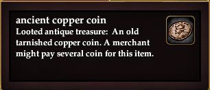 Ancient copper coin 76,463 pages on this wiki Edit Edit source History Talk 0 In-Game Examine Window Ancient copper coin other resources EQ2U · LootDB · EQ2LL · ZAM · Census xml EverQuest II Item Information Type : Looted Treasure Awards AA Ancient copper coin An old tarnished copper coin Obtain: From the corpse of tier 3 mobs . What does this information mean? Categories : Items Looted Treasure (Item Type) Items that award AA Articles missing itemlink Item pages with existing default images Add category Cancel Save
