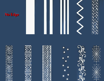 - There are about a dozen edge designs like: thick lines, thin lines, dots, squiggles, etc.