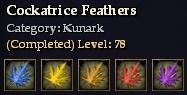 - Gold Cockatrice Feather -- Rare. Also used in the Kunark Expert Recognition Collection .