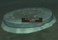 - Enter the Gigglegibber Hideout through manhole cover at ( 40, -29, 115 ) /waypoint 40, -29, 115 under water below the Bobick Village Docks in the Enchanted Lands .