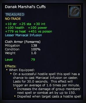 On a successful hostile spell this spell has a chance to cast Maniacal Infusion on the group. Last for 30.0 seconds. This effect will trigger an aerage of 1.6 times per minute.