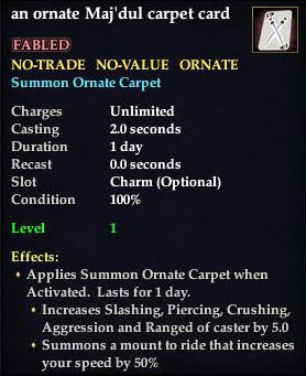 An EverQuest 2 loot card that grants the ability to summon a flying carpet.