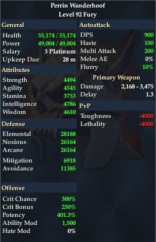 Need to speak Druzaic to hire him. Critical Chance - 300% Critical Bonus - 250% Potency - 250...