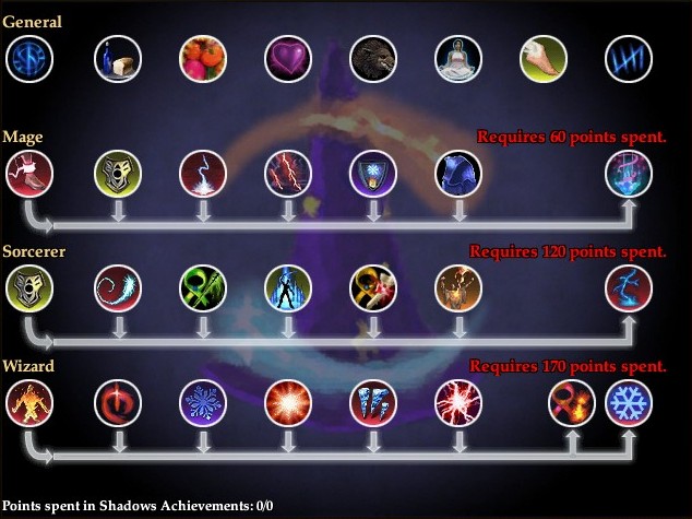These are all the Shadows AAs accessible to the Wizard subclass. The different Shadows lines...