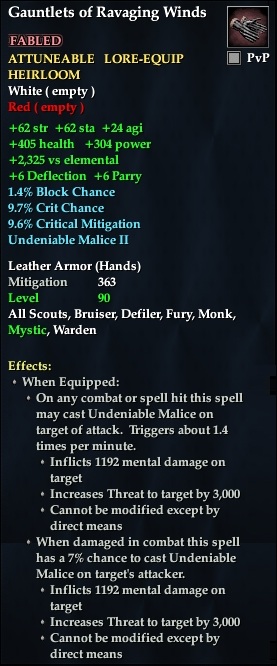 On any successful combat or spell attack this spell has a chance to cast Undeniable Malice on target of attack. This effect will trigger an average of 1.4 times per minute. If a melee attack is used, only the primary weapon can trigger this effect.