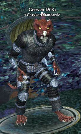 Gerwen Di'Ki 76,461 pages on this wiki Edit Edit source History Talk 0 Gerwen Di'Ki other resources ZAM · EQ2U · Census xml EverQuest II NPC Information Purpose Quest Race Sarnak Zone Timorous Deep ( Rise of Kunark ) Location On a ledge overlooking Pyrrin Roost ( 355, 110, 115 ) /waypoint 355, 110, 115 Related Quests Edit Weapon Break Categories : NPCs Timorous Deep NPCs Rise of Kunark NPCs Quest (NPC Type) Timorous Deep Quest NPCs Sarnak NPC pages that need EQ2MAP uid Add category Cancel Save