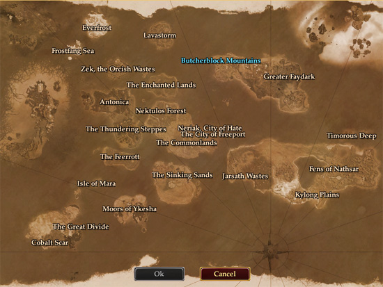 | Neriak, City of Hate | 1-20 | Yes, Neriak is the city and Darklight Wood adjacent start zone | "good" characters can not see on map | City Festival nearby in Darklight Wood |
