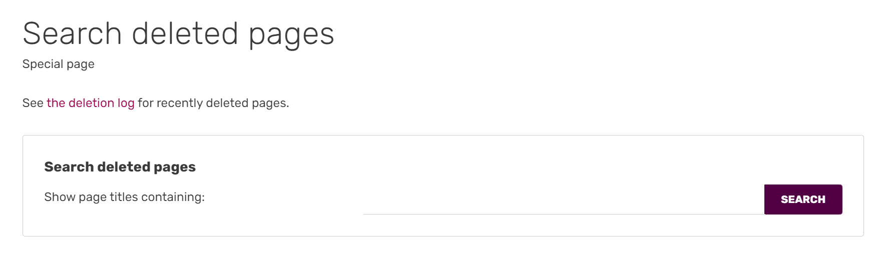- Enter the deleted page title in the "Show pages starting with" box and click "Search".