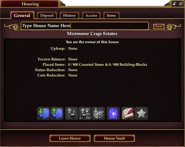 - Owner : Your character, the owner of the house. Only the character that owns the house can relinquish the ownership of the house or move all of its contents to a new house.