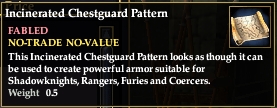 Purchased from Avess Ryiss at Danak Shipyard in the Jarsath Wastes for a Incinerated Chestguard Pattern and 3 Dragons Eye .