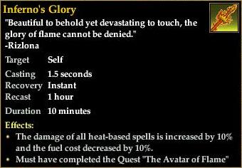 - The damage of all heat-based spells is increased by 10% and the fuel cost decreased by 10%.