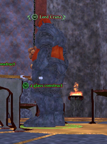 He comes with 3 glass constructs (lvl 50) as a grouped mob.