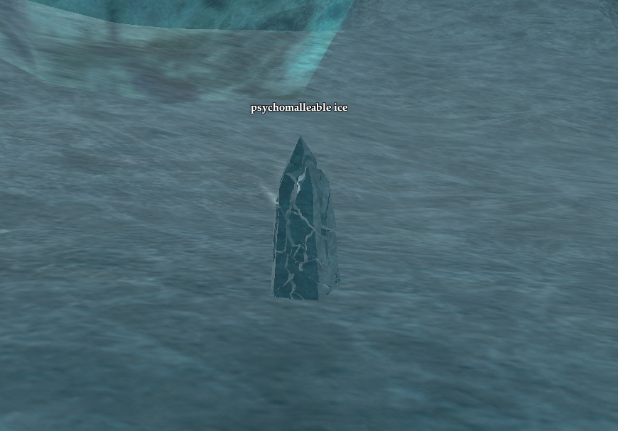 This is what the ice looks like when you are at a distance. It is nearly impossible to see and cannot be tracked using tracking scrolls. It can be ANYWHERE on the ice and this was down below past the mobs. Get on your flying mount and start flying back and forth until you get close to it and it will be easier to spot since it changes shape.