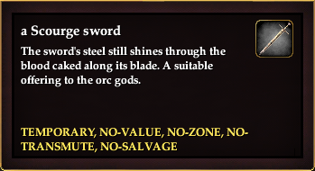 Killing each of the names at least once - a feat which will require at least 3 runs through the keep - will reward a Triumph achievement. In addition, each named will drop a shiny somewhere nearby when killed; completing this collection Keepsakes of Scourge Keep will reward a new shiny towards the Scourge metacollection as well as a choice of several infusers or Resolve 3 jewelry items.