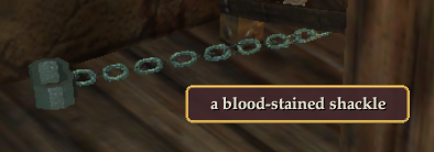 - A blood-stained shackle (by the cauldron) ( -11, 8, 27 ) /waypoint -11, 8, 27 .