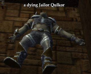 - Click on the dying Jailor Qulkor , who tells you that he has locked Thrug away and thrown the key into a cell.