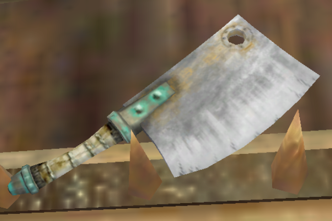 - Grab the cleaver on the wall inside Gud Eats Butcher , use the cleaver on Pork Chop.