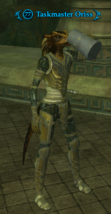 Taskmaster Oriss 76,461 pages on this wiki Edit Edit source History Talk 0 Taskmaster Oriss other resources LootDB · EQ2LL · ZAM EverQuest II Monster Information Race : Iksar Level : 76▲ Tier 8 Solo Aggressive Social Zone : Kunzar Jungle Location: Dalnir's Wheel area ( -8, -112, 682 ) /waypoint -8, -112, 682 What does this information mean? Related Quests Edit Investigate the Escape Categories : Monsters Rise of Kunark Monsters Iksar Tier 8 Monsters Solo Monsters Kunzar Jungle Monsters Add category Cancel Save
