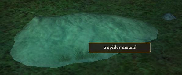 - A very small bump in the ground that can be highlighted, with the message " A Spider Mound " or " A Cave-in ". Sometimes only a tiny corner of the bump is poking out of the ground. Can be very hard to find.