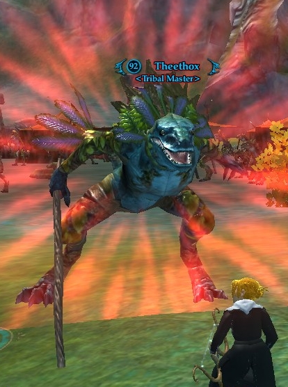 Pull him out of the camp with a ranged weapon, or body pull him when he's at the outskirts. If you happen to attract a bunch of his fellow Tribes-lizards... they will team up and gain some buff. Dunno if for dps or mitigation. Otherwise pretty easy. Watch for his damage reflect blood barrier. Can kill you fast.